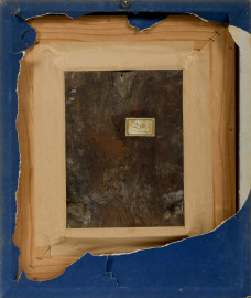 Icona rappresentante Madonna con Bambino, tempera su tavola con riza in metallo argentato, XIX-XX secolo, cm 27x20, entro cornice, (difetti)