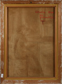 Ritratto di pittrice, olio su tela, cm 117x83, entro cornice, firmato e datato al retro "F. Cambise Littoria 1940" , (difetti)
