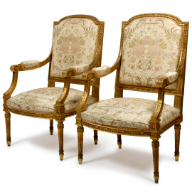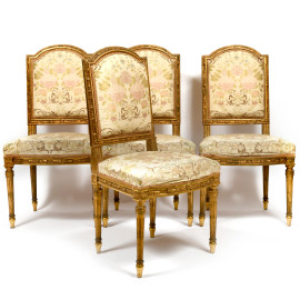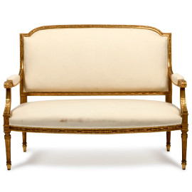Salotto stile Impero in legno dorato e tappezzeria avorio e a motivi floreali, XIX secolo, (difetti)