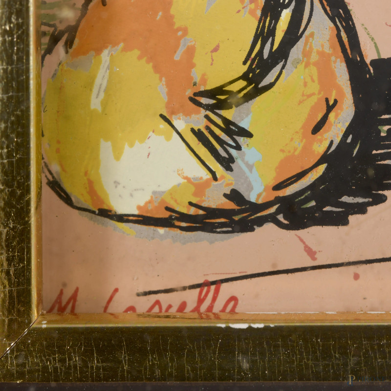 Michele Cascella, Omaggio a Portofino, multiplo retouchè su argento (P.A.), cm 20x26, entro cornice, (difetti)