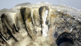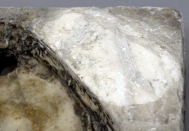 Acquasantiera in marmo bianco a valva di conchiglia, XVIII secolo cm 8,5x54x62, (difetti)