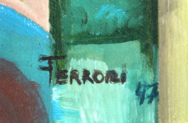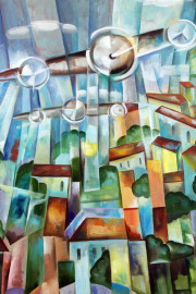 Aeropittura, olio su tela, cm 60x40, firmato e datato in basso a destra