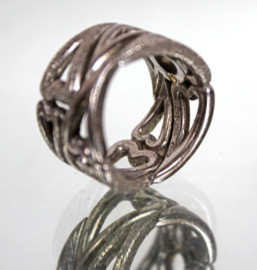 Anello in argento e oro traforato a forma di cuori, firmato Pianegonda