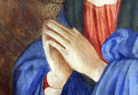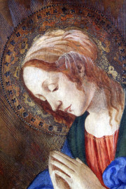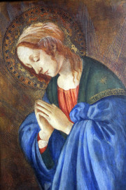 Antico dipinto raffigurante la Vergine, olio su tavola, cm 39x30, entro cornice.