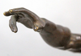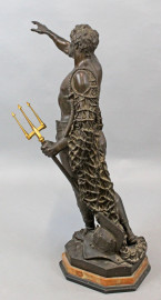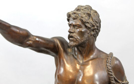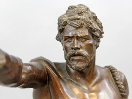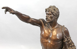 Ave Caesar morituri te salutant, scultura in bronzo a patina scura, cm h 66,5, su base in marmo, (forcone da saldare)