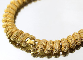 Collana girocollo di bigiotteria, in metallo dorato, lunghezza cm 41, XX secolo