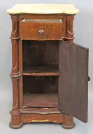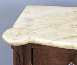 Comodino in mogano del XIX secolo, con piano in marmo bianco, ad un cassetto ed uno sportello, cm h 87x45x30, (difetti)