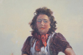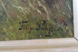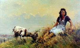 Contadina con capretta, olio su tavoletta, cm 30x50, firmato Palizzi, entro cornice