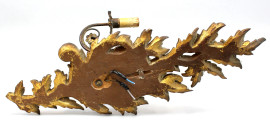 Coppia di appliques in legno intagliato e dorato, due braccia a volute in metallo, XX secolo, alt. cm 61, (lievi difetti)