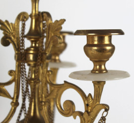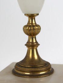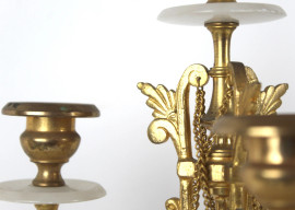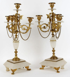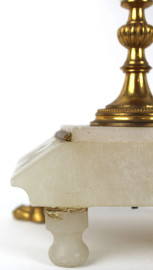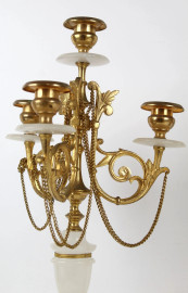 Coppia di candelabri a quattro fiamme in onice ed antimonio, Francia, inizi XX secolo, alt. cm 43