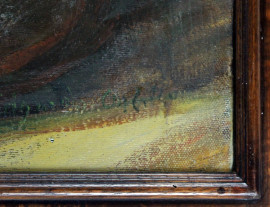 Paesaggio con figura, olio su tela, cm 60x50, entro cornice