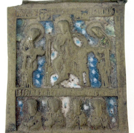 Deesis in bronzo e smalti, Russia, XVIII-XIX secolo, cm 7,5x5,5, (difetti)