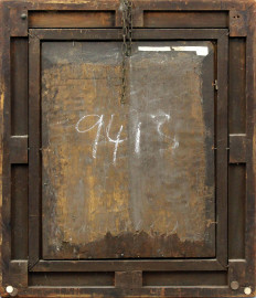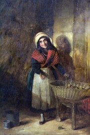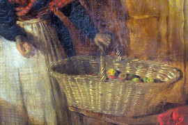 Fanciulla con cesta di frutta, olio su tavola, cm 53x40, XIX secolo, entro cornice