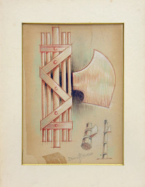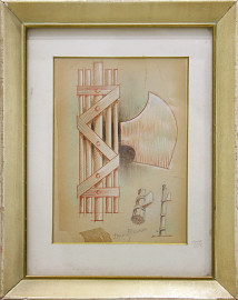 Fascio Littorio, bozzetto a sanguigna del maestro Duilio Bottari (XX sec.), cm 18x12, firmato, entro cornice