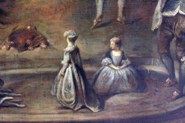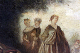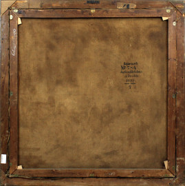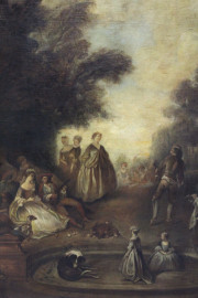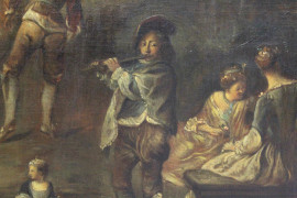 Festa campestre, olio su tela, cm 105x105, XIX secolo, entro cornice.