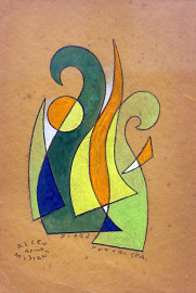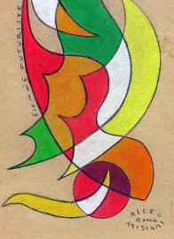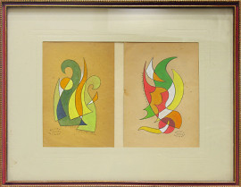 Futurismo italiano, Fiori futuristi e Forme futuriste, lotto composto da due dipinti a tempera su carta, ciascuno cm 18x12, firmati Alceo Misiani (XX sec.) e titolati, entro cornice