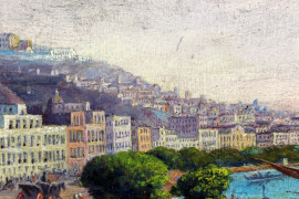Golfo di Napoli, olio su tavola, cm 23x51, fine XIX secolo, entro cornice.