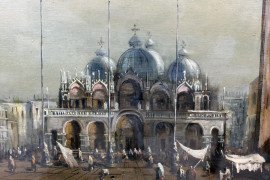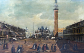 Veduta di Piazza San Marco, olio su tela, cm 60X120, entro cornice