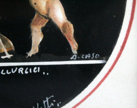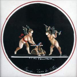 I metallurgici, Pompei Casa dei Vetti, tecnica mista su carta, cm 14x14, firmato A. Caso, entro cornice
