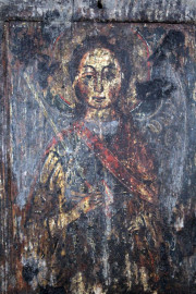 Icona raffigurante San Michele Arcangelo, tempera su tavola, cm 47x34,5, XIX-XX secolo, (difetti)
