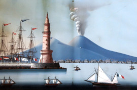 Il Vesuvio, gouache su carta, cm 43,5x62,5, entro cornice