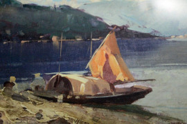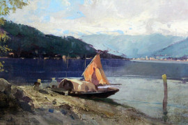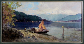 Lago Maggiore, olio su cartone telato, cm 20x38, firmato, entro cornice