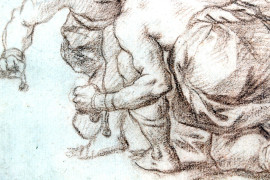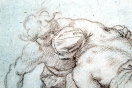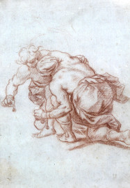 Lotta tra schiavi, sanguigna su carta, cm 18x13,5, XVIII secolo, entro cornice