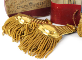 Lotto composto da spalline per uniforme militare ed una medaglia, entro custodie originali, prima metà XX secolo