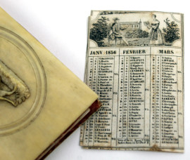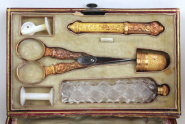 Lotto composto da una miniatura, un'agendina ed un set da cucito, XIX-XX secolo, misure max cm 12x8x2,5, (difetti)