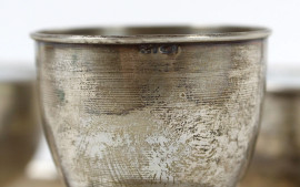 Lotto di due tazzine ed un portauovo in argento, alt. max cm 6, peso lordo gr 170