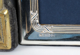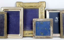 Lotto di sei cornici portafoto in argento, misure max cm 21x17,5, (difetti)
