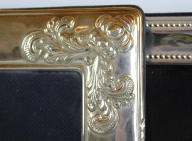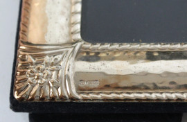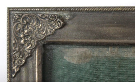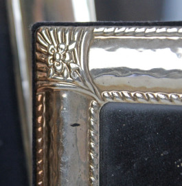 Lotto di sei cornici portafoto in argento, misure max cm 31x25, (difetti)