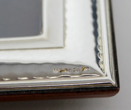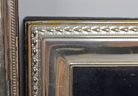Lotto di sette cornici portafoto in metallo argentato, cm 28,5x22,5, (difetti)