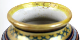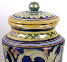 Lotto di tre barattoli in ceramica a lustro, XX secolo, alt. max cm 25, (difetti e restauri)