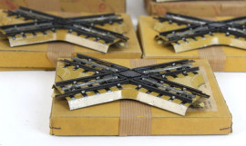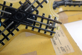 Lotto di unidici scatoline contenti binari, scambi e incroci, marcate Marklin e Jep