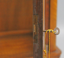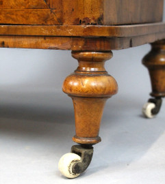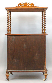 Mobiletto in radica di tuja, inizi XX secolo, ad uno sportello, montanti a torciglione, cm h 112,5x60,5x35, completo di rotelle