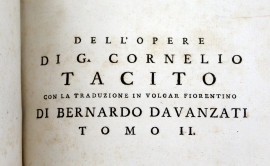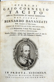 Opere di Gaio Cornelio Tacito, con la traduzione in volgar fiorentino del Signor Bernardo Davanzati, in Padova presso Giuseppe Comino, tomi I e II, XVIII secolo