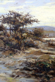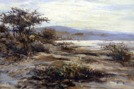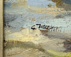 Paesaggio lacustre, olio su cartone, cm 50x70, firmato, G. Fioresi, entro cornice