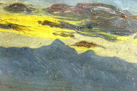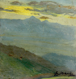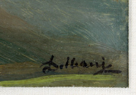 Paesaggio piemontese, olio su cartone, cm 13x12,5, firmato, entro cornice