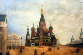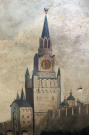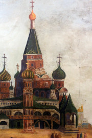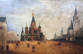 Piazza rossa, olio su tela, cm 120x200, XX secolo, entro cornice, (difetti alla tela)