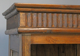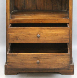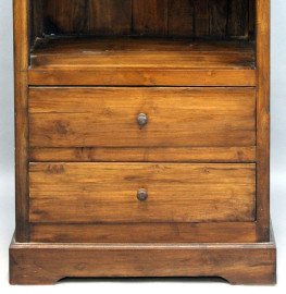 Piccola libreria in noce, a tre ripiani e due sportelli, prima metà XX secolo, cm h 200x58x32,5, (difetti)