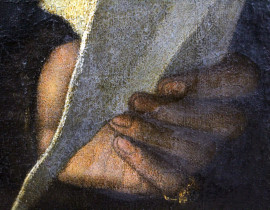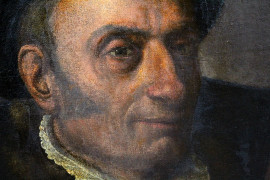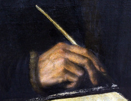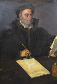 Pittore del XVI secolo, Ritratto di uomo con lettera, olio su tela, cm 99x75, entro cornice, (cadute di colore sparse)