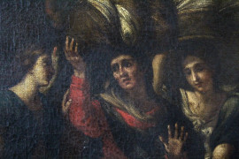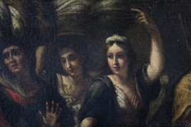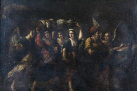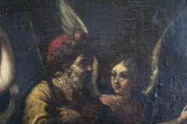 Pittore del XVII secolo, Lot in fuga da Sodoma, olio su tela, cm 49,5x63,5, entro cornice