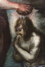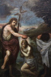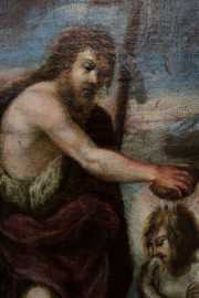 Pittore del XVIII secolo, Battesimo di Cristo, olio su tela, cm 87x70, entro cornice