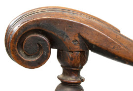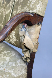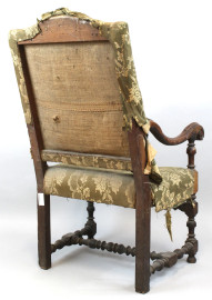 Poltrona in noce del XVII secolo, gambe a rocchetto riunite da traversa, alt. cm 113, (segni del tempo, tappezzeria da rivedere)