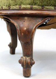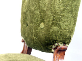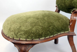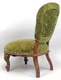 Poltroncina bassa in noce, fine XIX-inizi XX secolo, imbottita e rivestita in velluto verde, alt. cm 90