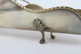Portagrissini in argento, corpo liscio, poggiante su quattro piedini a ricciolo, prima metà XX secolo, cm 9x29x6,5, gr.205