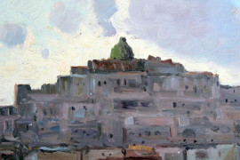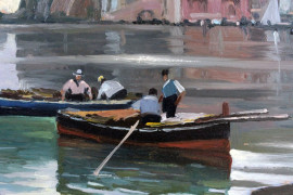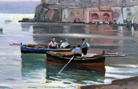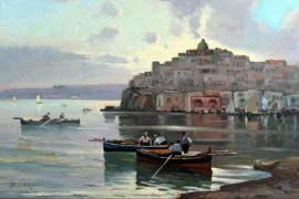 Procida dal mare, olio su faesite, cm 38x51, firmato, entro cornice