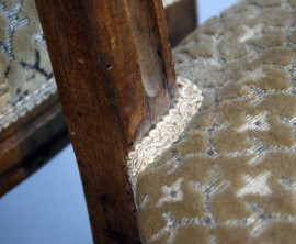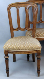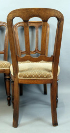 Quattro sedie in noce del XIX secolo, schienali a giorno, gambe tornite, sedute imbottite, altezza cm 88, (segni del tempo)