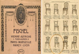 Nel1870 la ditta FISCHEL di Niemens in Boemia, in seguito alla liberalizzazionedel brevetto THONET sulla curvatura a vapore del legno, divenne la prima e piùprestigiosa concorrente a costruire in faggio massello curvato. Nella fabbricaThonet lavorò per anni il figlio primogenito di Fischel ed è qui in fabbricache conobbe nel dettaglio tutti i segreti della curvatura del legno che glipermisero di mettere a punto dei prodotti di altissima qualità. Nel primocatalogo della Fischel compaiono numerosissimi articoli ma quelli di maggiorrilievo erano i modelli che presentavano le torniture e tale lavorazionerappresentava il segno distintivo della qualità dei prodotti dell’Azienda